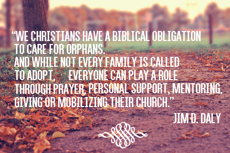 Caring for orphans doesn’t necessarily mean adopting them. There are so many ways to take care of orphans, such as fostering them, providing financial assistance or materials to orphanages or families who are fostering, mentoring or tutoring children in foster care, sending/donating Christmas presents, babysitting for a foster family, being a transporter or visit supervisor, or being licensed to provide short term or respite care, or being a CASA volunteer.